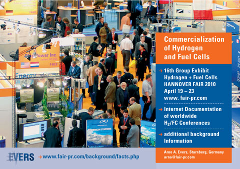 - 2006: sold the Group Exhibit Hydrogen + Fuel Cells at HANNOVER FAIR to Deutsche Messe AG, the owner of the fairground at Hannover, the biggest fairground of the world