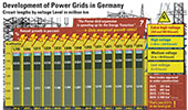 The German power grid has a total length of more than 1.8 million kilometers. This corresponds to 4.78 times the distance from the earth to the moon, or 45.8 times around the equator. It consists of four voltage levels. |