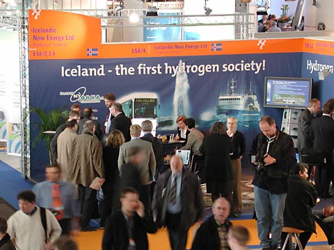 A popular booth with a lot of visitors interested in the Hydrogen fuelling station from Norsk Hydro Electrolysers.